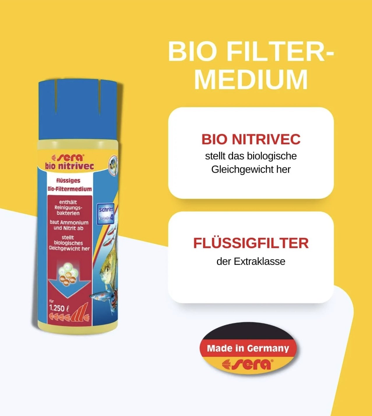 sera bio nitrivec, un producto de la biotecnología de sera, contiene millones de bacterias de limpieza que permiten establecer rápidamente el equilibrio biológico, de manera que las sustancias tóxicas se descomponen continuamente.